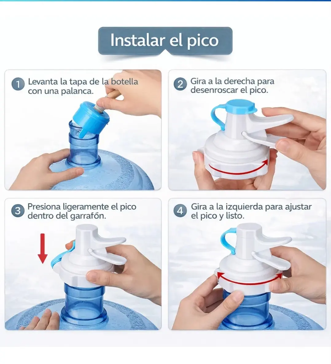 “Excelente producto” Muy práctico, ya no tengo que levantar el bidón pesado. No derrama nada y se ve resistente. Lo usamos todos los días en casa. Recomendado.